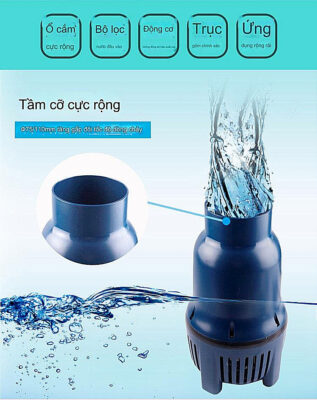 Công dụng: bơm lọc nước bể cá, hồ cá cảnh, hồ cá Koi, cá rồng, bơm hòn non bộ, tiểu cảnh, đài phun nước, có thể lắp đặt ở ao hồ