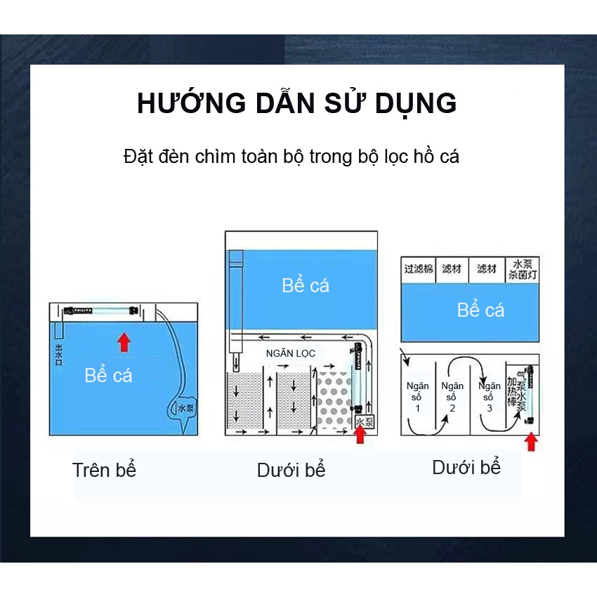 – Chọn đèn có công suất và kích thước phù hợp với hồ chính và ngăn lọc. Hoặc 7-10W/ 1m3 nước